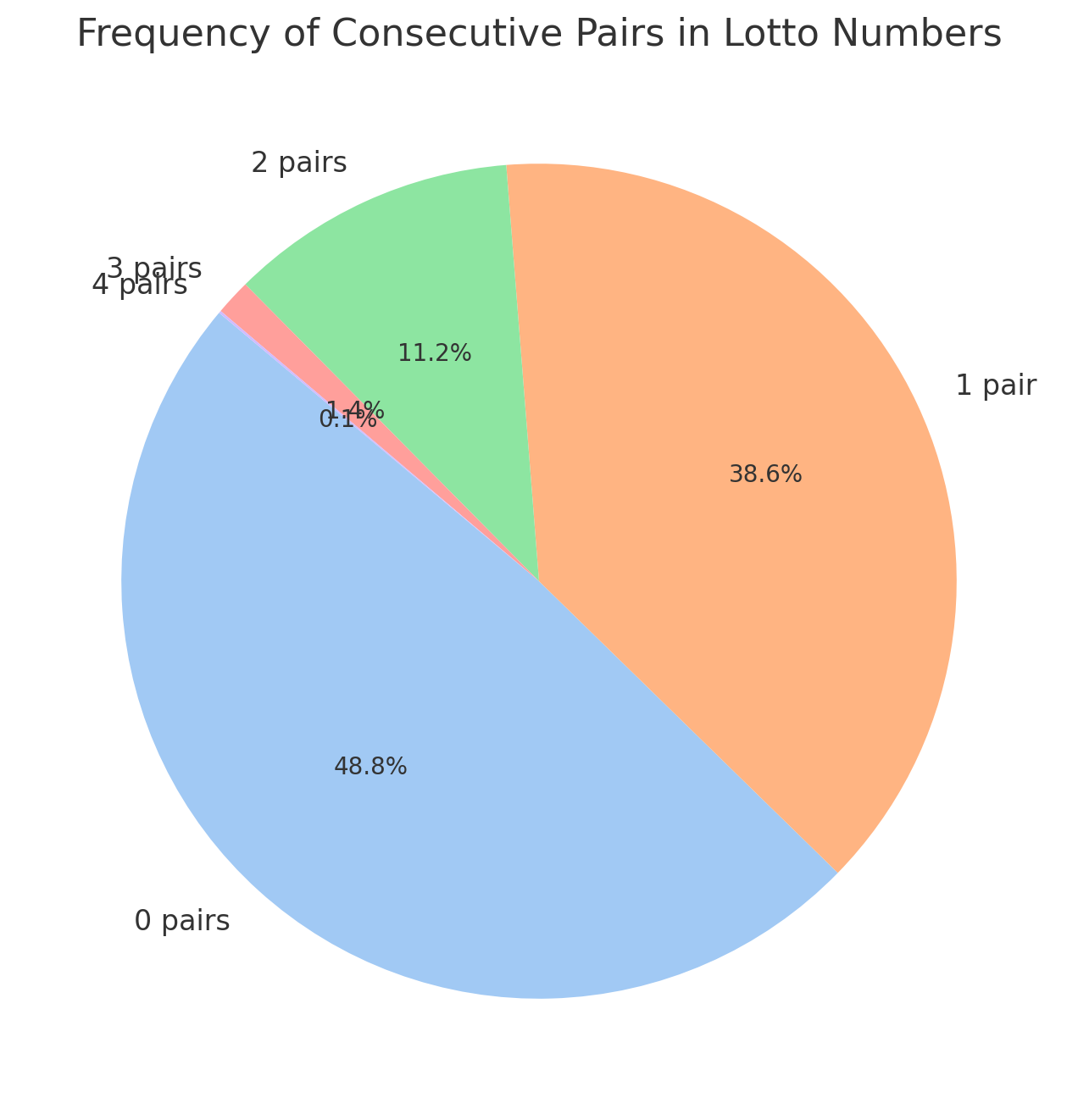 이 결과를 통해 대부분의 로또 번호 조합에는 연속되는 번호 쌍이 1개 또는 없는 것을 알 수 있습니다.
