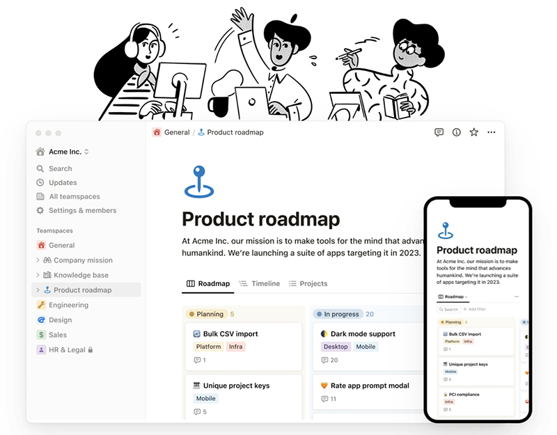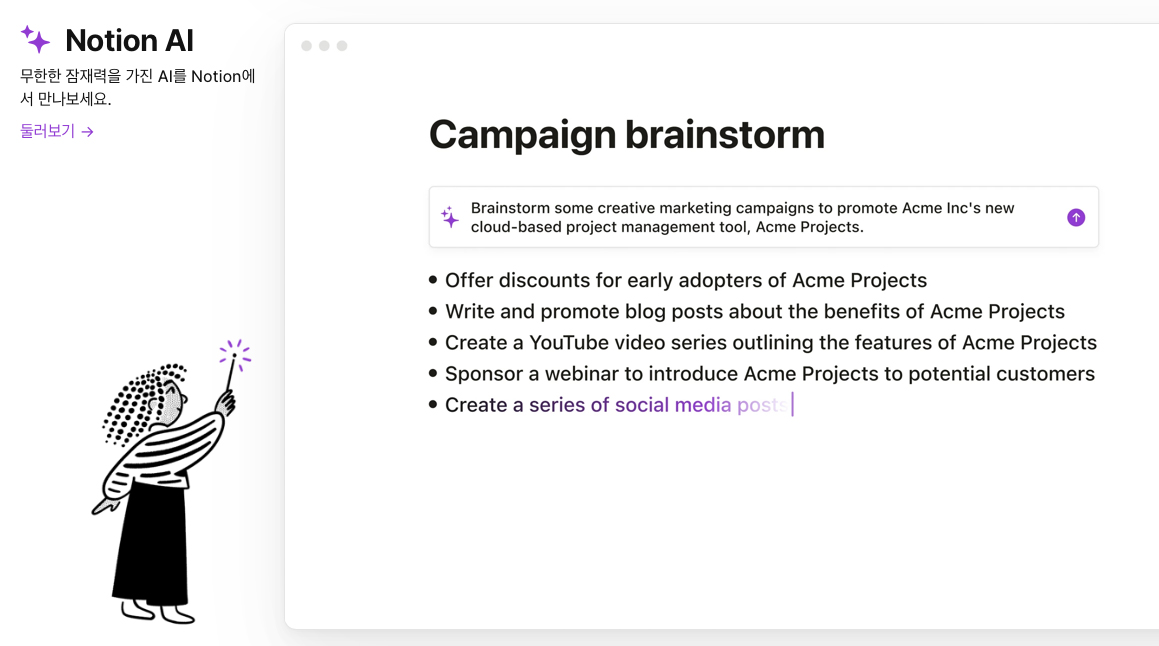 노션은 '모든 것을 한 곳에' 모아두는 워크스페이스 플랫폼입니다. 이 도구는 메모 작성부터, 할 일 목록 관리, 데이터베이스 작성, 그리고 팀의 위키 생성까지 다양한 기능을 제공합니다. 이런 다양한 기능 덕분에 개인이나 팀, 그리고 기업에서도 작업을 보다 효율적으로 관리하고 진행할 수 있게 도와줍니다.