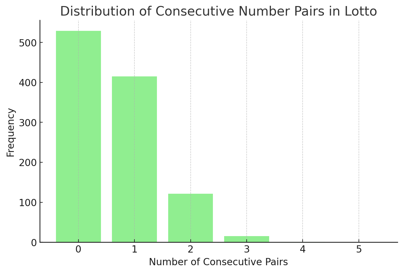 위 그래프에서 볼 수 있듯이, 대부분의 회차에서 연속되는 번호 쌍은 1개 또는 없는 경우가 많습니다. 2개 이상의 연속되는 번호 쌍이 나오는 경우는 상대적으로 드물게 나타납니다.