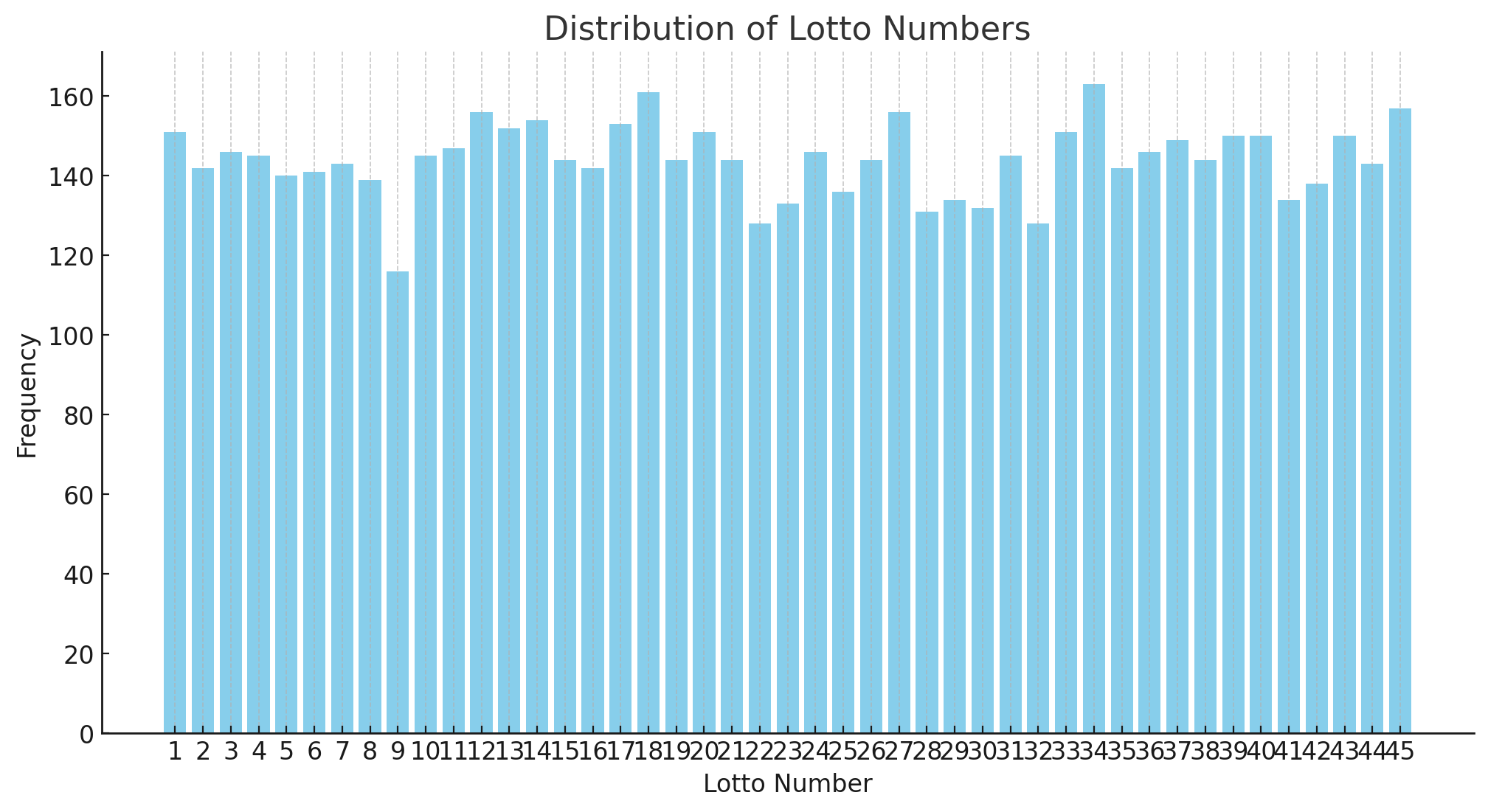 - 로또 번호의 분포 분석: 각 번호가 몇 번 추출되었는지 확인하고, 가장 많이 나온 번호와 가장 적게 나온 번호를 파악합니다.
